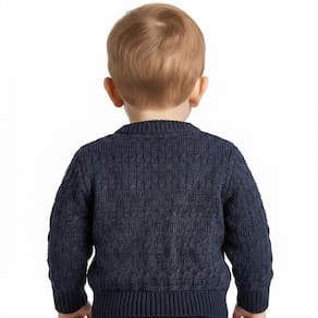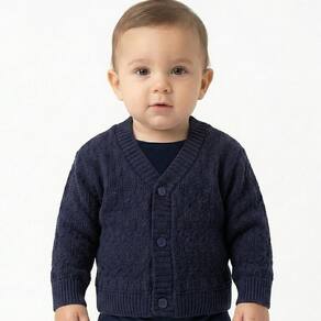 Casaco de Trabalhado Tricô Kids Tranças feito em tecido algodão e acrílico, gola em V, fechamento em botões, manga longa e etiquetas personalizadas.