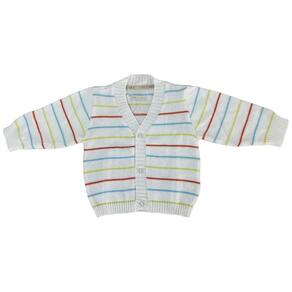 Casaco de Tricô de Bebê Listrado Cores Tricô Kids Branco - P - Branco