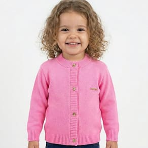 Casaco Liso Tricô Kids Menina Rosa Chiclete - 2 anos - Rosa
