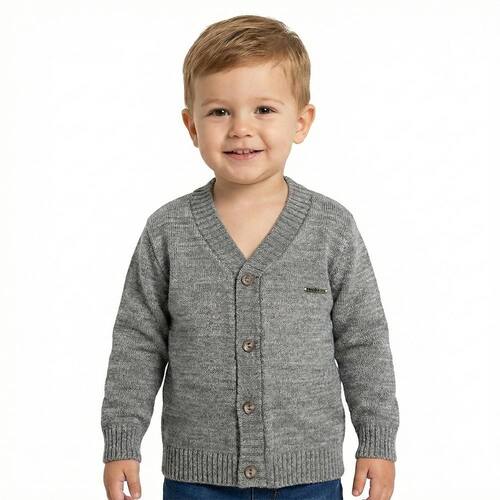 Casaco Liso Tricô Kids feito em tecido acrílico, gola redonda, estampa Tricô Kids na lateral do peito, fechamento em botões, manga longa e etiquetas personalizadas.