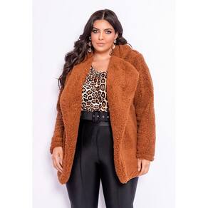CASACO PLUS SIZE TED MAXI. Casaco teddy com lindo destaque no visual, seu tecido em pelúcia garante um ótimo conforto e muita elegância, design diferenciado pois o casaco possui gola com acabamento por toda modelagem, mangas longas com revestimento macio em poliéster interno bem confortável, modelo bem característico e procurado para tendência desta coleção outono/inverno. Casaco plus size confeccionado em tecido teddy proporcionando conforto imensurável, possui em sua composição poliéster entregando aspectos de qualidade e durabilidade, forro interno em poliéster também com camadas e fibras bem leves e macias destacando características únicas a este modelo.