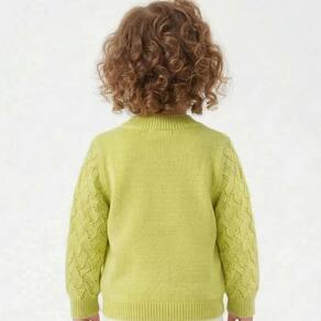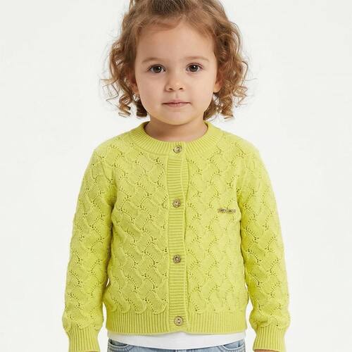 Casaco Trabalhado Abstrato Tricô Kids Raglan feito em tecido algodão e acrílico, gola redonda, Tricô Kids em dourado no peito, fechamento em botões, manga longa e etiquetas personalizadas.