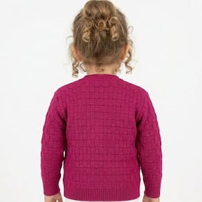 Casaco Transpassado Tricô Kids feito em tecido algodão e acrílico, gola redonda, Tricô Kids em dourado no peito, fechamento em botões, manga longa e etiquetas personalizadas.