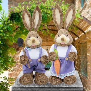 Casal De Coelhos De Páscoa Decoração Enfeite Coelhinhos - 46cm -