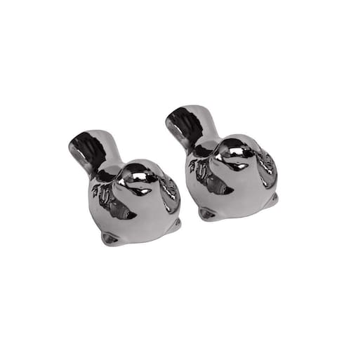 Casal de Pássaros em Porcelana na cor prata com 8,5cm de largura e 6cm de altura.