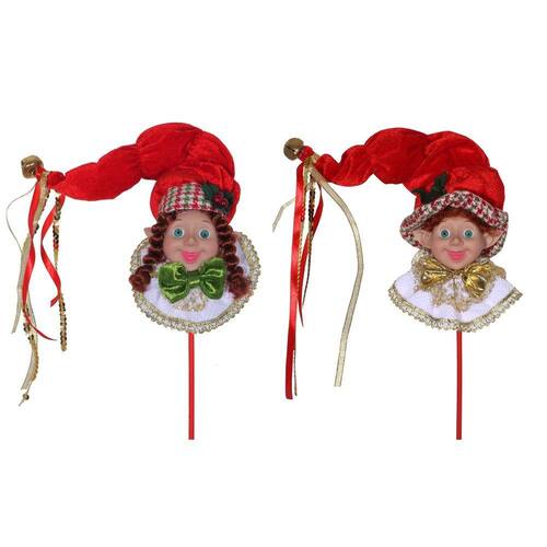 Modelo com rosto e vareta para decoração de jardins ou para pinheiro de natal! O casal de duendes possui lindo e longo gorro decorado cm guiso e fitas vermelhas medindo 30cm de comprimento!