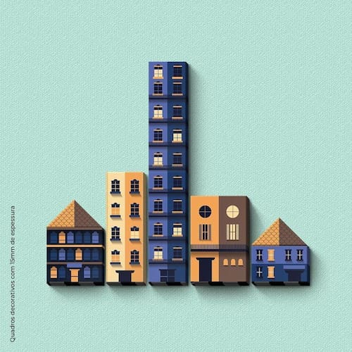 Essa cena urbana composta por quadros retangulares, quadrados e triângulos, combina com qualquer ambiente, oferencendo um toque refinado e elegante. Quadros ou placas decorativas com essa exclusividade e criatividade, você encontra apenas aqui, onde tudo é d.