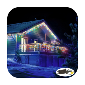 Linda Cascata Led à prova d’água, com 300 Leds. Possui 10 funções (9 funções de pisca pisca e 1 fixa) medindo 6 metros de largura e com fio branco.