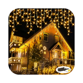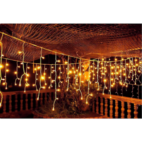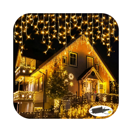 Linda Cascata Led à prova d’água, com 320 Leds. Possui 10 funções (9 funções de pisca pisca e 1 fixa) medindo 8 metros de largura e com fio branco.