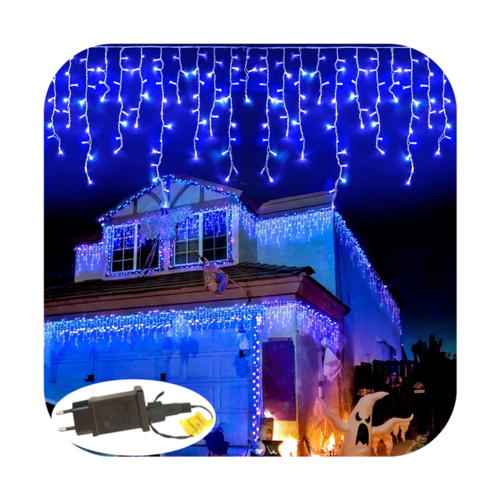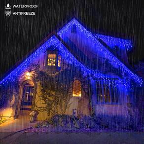 Cascata 350 Led 8 Funções Prova D`água Azul 31v Bivolt Fio Branco 10m Uso Externo Natal