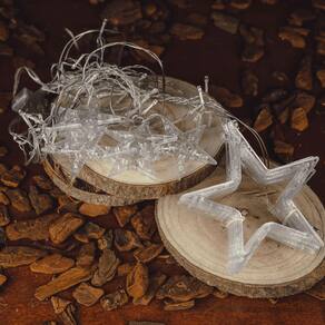 6 Estrelas Grandes com ( 18cm) cada com 10 lâmpadas internas de LED + 6 cordões com 28cm e 5 lâmpadas de LED
