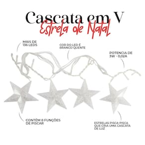 Com um design moderno e elegante, conta com 3 metros de comprimento e 136 LEDs em formato de "V", as estrelas cintilantes criam uma cascata de luz, adicionando um toque deslumbrante e festivo à sua decoração e seu espaço em um verdadeiro conto de fadas.