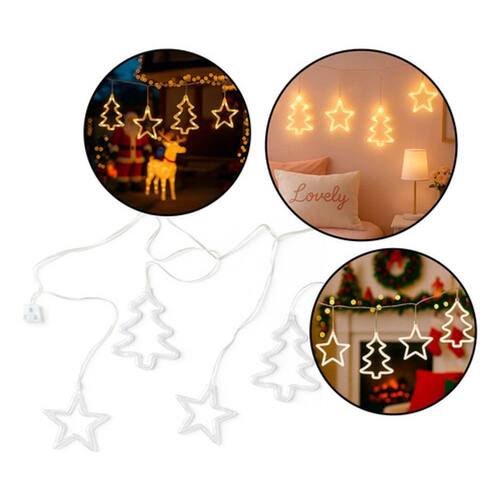 1x Luz Cascata Natalina LED com formatos de Estrela e Árvore de Natal