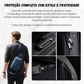 Case armazenamento e transporte para console steam deck lcd Cor: azul marinho Proteção, praticidade e estilo em um único produto. A case bag universal foi desenvolvida para transportar seus dispositivos com total segurança, combinando design moderno, estrutura rígida e acabamento premium. Compatível com console steam deck oled, steam deck lcd, além de celulares e acessórios. Ideal para viagens, deslocamentos e o dia a dia - mantendo tudo protegido e sempre à mão. Conta com porta usb lateral, permitindo carregar seus dispositivos através de power bank não incluso , e cadeado embutido com senha, oferecendo mais segurança contra acessos indesejados. Com alça ajustável e ergonômica, pode ser Utilizado no ombro ou transversalmente, seu interior espaçoso e acolchoado possui divisórias inteligentes para acomodar console, tablet, cabos e acessórios. Design versátil, resistente à água e ideal para quem busca praticidade sem abrir mão da proteção. Especificações Modelo: case bag universal com cadeado e porta usb Material: material sintético premium + estrutura rígida eva Dimensões: 21 34 12 cm Recursos adicionais: porta usb lateral, cadeado embutido, alça ajustável Compatibilidade: console steam deck oled / console steam deck ldc. Conteúdo 1x case bag universal com cadeado e porta usb Marca: Não Informado