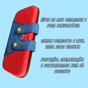 Case capa para switch oled video game bolsa estojo resistente mario para nintendo transporte portátil armazenamento vermelho Capa rígida para video game portátil - material: eva rígido - cor: vermelho e azul - compatível com switch oled Capa rígida projetada para proteger o seu nintendo switch oled com estilo e segurança. Produzida em eva de alta resistência, é ideal para transporte e armazenamento, protegendo contra impactos, riscos e sujeira. O design moderno nas cores vermelho e azul dá um toque único ao seu acessório. Destaques do produto: