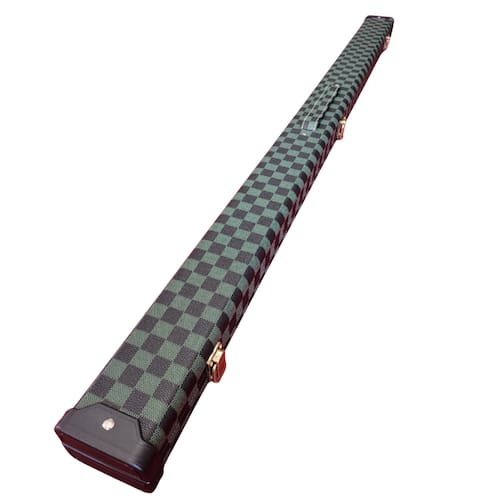 Mais do que proteção, um acessório que expressa estilo. Este case de luxo foi pensado para jogadores que usam tacos 3/4 e querem transportar seu equipamento com segurança e identidade própria. A estrutura em madeira com revestimento PU no elegante padrão verde xadrez garante resistência, enquanto o interior acolchoado preserva seu taco contra arranhões e impactos.