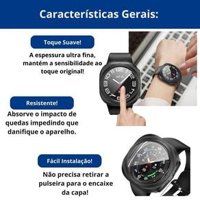 Proteção contra arranhões e impactos: A capa acrílica 360º envolve todo o corpo do smartwatch, incluindo a tela e laterais, oferecendo uma proteção completa contra arranhões, impactos e quedas.