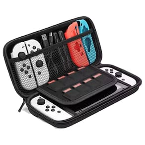 A maleta de transporte para o Nintendo Switch OLED da marca 123games é uma excelente opção para quem busca praticidade e proteção. Externamente, ela é confeccionada em EVA, um material conhecido por sua durabilidade e resistência a impactos. Internamente, a maleta é revestida com um tecido macio, garantindo que o console e os acessórios fiquem protegidos contra arranhões e danos. Além disso, a maleta possui espaço para 10 cartões de jogos, permitindo que você leve seus jogos favoritos para onde quiser. O zíper duplo facilita a abertura e o fechamento, proporcionando maior segurança durante o transporte. A alça de mão torna o transporte ainda mais conveniente e confortável. Essa combinação de materiais e funcionalidades faz da maleta 123games uma escolha prática e segura para transportar seu Nintendo Switch OLED. Você já tem uma maleta para o seu console ou está pensando em adquirir uma?