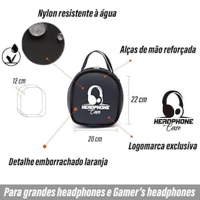 Projetado para você transportar seu Headphone, fone de ouvido de cabeça, com toda segurança. Protegendo contra poeira, riscos, e respingos de água. Externamente feito de Nylon 600 resistente, com enchimento de EVA que evita impacto direto, e internamente forro aveludado super confort.