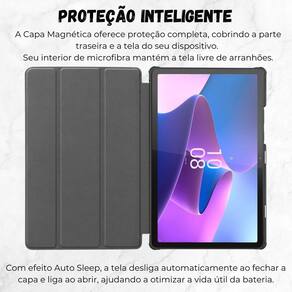 Case magnética premium para tablet lenovo m10 10.6 tb-x606f Cor: preto imagine seu dispositivo totalmente seguro contra quedas acidentais, graças a capa resistente e durável. além de proteger contra impactos, essa capa é equipada com um interior de microfibras suave, que preserva a integridade da tela, mantendo-a livre de arranhões e pronta para o uso diário. o recurso auto sleep, acionado pelo sensor magnético integrado, não só economiza energia como prolonga a vida útil da bateria do seu tablet. Feche a capa para ativar o modo de suspensão e abra para ter seu dispositivo pronto para uso instantaneamente. mantenha seu tablet protegido e funcional em qualquer situação. Invista agora nessa capa inteligente que combina segurança e praticidade em um só produto ------------------ Atenção ------------------ Compatível com tablet lenovo m10 10.6 3 geração tb-x606f / tb-x606x . ------------------ ------------------ posso usar a capa com película R: sim, você pode usar a capa junto com a película sem problema, a case não interfere no uso da película. como a capa ajuda a economizar bateria no meu tablet R: a capa possui o recurso auto sleep, que desliga a tela automaticamente ao fechar a capa e liga ao abrir. Isso evita o consumo desnecessário de bateria, prolongando a duração da carga. a capa oferece proteção suficiente contra quedas R: sim a capa foi projetada com bordas reforçadas que absorvem o impacto em caso de quedas, protegendo seu tablet e reduzindo o risco de danos como rachaduras e quebras. posso ajustar o tablet para diferentes ângulos de visualização com essa capa R: sim a capa permite que você coloque o tablet em dois modos de uso: 30º para escrita e 65º para visualização, proporcionando conforto e praticidade no dia a dia. o revestimento interno protege a tela do tablet R: com certeza o interior da capa é revestido com microfibra, que cria uma barreira protetora para a tela, evitando riscos e danos durante o uso diário. ------------------ Especificações ------------------ Peso: 30g. Material interno: camurça. Compatível com tablet lenovo m10 10.6 3 geração tb-x606f / tb-x606x . ------------------ Conteúdo ------------------ 1x capa magnética. Anúncio referente a case Tablet não incluso ------------------ Apresentação: ------------------ - qualidade garantida. - atendimento qualificado. - enviamos para todo o brasil. - compra garantida. - despachamos em até 1 dia útil após confirmação do pagamento garantimos a devolução por arrependimento em até 7 dias, após o recebimento e de 15 dias contra defeitos de fabricação. Marca: Star Capas E Acessórios