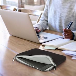 Material Neoprene com forro interno acolchoado; Tablet até 7.5 polegadas; Bolso frontal com zíper.