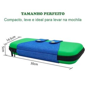 - Mantém seu console sempre protegido - Organiza seus acessórios em um único lugar - Estilo exclusivo inspirado em Luigi, ideal para fãs da franquia Mario - Fácil de transportar na mochila ou na mão