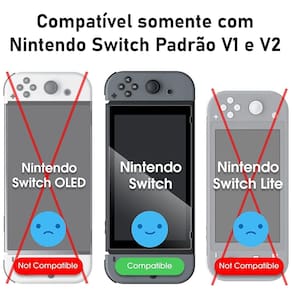 Kit contendo: - 1 case para Nintendo Switch Vermelha e Azul (Mario) - 1 película de vidro premium para Nintendo Switch Padrão V1 e V2 - 1 kits de instalação de película (pano seco, pano úmido e adesivo removedor de poeira) - 4 grips para analógicos (conforme imagem)