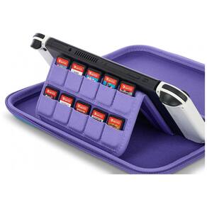 O PowerA Slim Protective Console Case Tie-dye Pikachu & Eevee é uma case rígida fina desenvolvida para proteger o Nintendo Switch em modo portátil, com estampa temática colorida de Pikachu e Eevee em estilo tie-dye. A parte externa traz acabamento resistente com alça de mão e zíper durável, formando uma estrutura firme para transporte em mochilas, bolsas ou na mão, protegendo o console contra arranhões e pequenos impactos.
