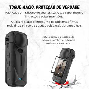 Case tpu flexível para câmera insta 360 x5 2025 + película Cor: preto mantenha sua insta x5 360 2025 segura e estilosa com a nossa capa de silicone premium diga adeus a arranhões e quebras nossa capa de silicone não só protege sua câmera contra danos, como também oferece uma textura suave e agradável ao toque. Mantenha sua câmera impecável e pronta para capturar os melhores momentos, sem comprometer o estilo. instalação em instantes e proteção que faz a diferença. Com cortes precisos, você terá acesso fácil a todos os botões e funcionalidades, garantindo que nada atrapalhe sua experiência de uso. não perca a oportunidade de manter sua insta 360 x5 2025 protegida e funcional. Compatível exclusivamente com a insta 360 x5 modelo 2025 . Não serve em versões anteriores como x3 ou x4. ------------------ ------------------ a capa de silicone protege minha câmera contra quedas R: sim, a capa de silicone protege sua insta x5 360 2025 contra arranhões, pequenas quedas e impactos, mantendo sua câmera segura e em perfeitas condições. a capa interfere no uso dos botões e funcionalidades da câmera R: não, a capa possui cortes precisos que garantem acesso fácil e total a todos os botões, portas e funcionalidades da câmera, sem comprometer o desempenho ou a usabilidade. o silicone da capa deixa a câmera escorregadia R: não, o silicone utilizado na capa tem uma textura suave, mas ao mesmo tempo oferece uma boa aderência, garantindo que a câmera permaneça firme em suas mãos. a capa é compatível com outros modelos da insta360 R: não, este modelo é compatível exclusivamente com a insta360 x5 modelo 2025 . Não serve nos modelos x4, x3 ou anteriores. posso usar a capa com bastões, tripés ou suportes R: sim a parte inferior da capa permite encaixe com bastões de selfie, tripés e acessórios compatíveis com a x5. a capa é fácil de instalar R: sim, é super simples de colocar e remover. O silicone é flexível e se ajusta perfeitamente ao corpo da câmera. ------------------ Especificações ------------------ Cortes precisos Material: silicone de alta qualidade Proteção: contra arranhões, quedas e impactos Altura: 13 cm Largura: 5 cm Espessura: 2,6 cm Compatível exclusivamente com a insta360 x5 modelo 2025 . Não serve em versões anteriores como x3 ou x4. ------------------ Conteúdo ------------------ 1x case silicone. 1x película. 1x kit limpeza. Anúncio referente a case Acessórios que ambientam as fotos não inclusos. ------------------ Apresentação: ------------------ - qualidade garantida. - atendimento qualificado. - enviamos para todo o brasil. - compra garantida. - despachamos em até 1 dia útil após confirmação do pagamento Garantimos a devolução por arrependimento em até 7 dias, após o recebimento e de 15 dias contra defeitos de fabricação. Marca: Não Informado Ean: 7793382779604