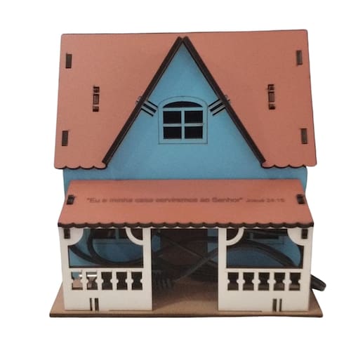 Informações do Produto: Tenha um lindo abajur para decorar as suas noites de sono. Com detalhes únicos, esta casinha acompanha a frase, eu e minha casa serviremos ao senhor, escrito no telhado dela.