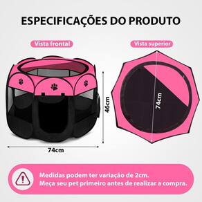 Casinha Cercado Pet Dobrável Portátil Cachorro Gato Rosa Ofereça mais conforto e segurança para seu pet com este prático cercadinho dobrável Ideal para gatos, cães de pequeno e médio porte, coelhos, porquinhos-da-índia e até hamsters, ele é perfeito para momentos de descanso, brincadeiras ou até mesmo viagens. Cores: Rosa-chiclete e preto Amanho montado: 74 cm diâmetro x 46 cm altura Tamanho dobrado: 46 cm x 31 cm x apenas 3 cm de altura - cabe em qualquer cantinho Principais vantagens: Portátil e leve: Dobra facilmente, ideal para transporte e armazenamento. Versátil: Pode ser em casa, quintal, camping ou até mesmo em viagens. Abertura superior e frontal com zíper: Mais praticidade para interagir com seu pet. Tela respirável em todas as laterais: Ventilação garantida e visibilidade total. Material resistente e durável: Estrutura reforçada e tecido lavável. Raças indicadas exemplos : Cães pequenos e médios: Poodle, Shih-tzu, Yorkshire, Maltês, Buldogue Francês, Lhasa Apso, Spitz Alemão Anão , Pug, Dachshund Salsicha , Schnauzer Miniatura. Gatos de todos os portes Coelhos e roedores de médio porte Palavras-chave para busca: Cercado pet portátil; cercadinho para cachorro; cercado dobrável para gato; cercadinho coelho; cercado pequeno porte; casinha de cachorro portátil; cercado para roedores; cercadinho para animais; canil dobrável; cercado desmontável para pets; playpen pets; cercado gatos e cães; viveiro portátil. Marca: Não Informado Ean: 7891676034634