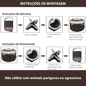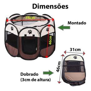 Casinha Cercado Tenda Pet Dobrável Portátil Cachorro Gato Ofereça mais conforto e segurança para seu pet com este prático cercadinho dobrável Ideal para gatos, cães de pequeno e médio porte, coelhos, porquinhos-da-índia e até hamsters, ele é perfeito para momentos de descanso, brincadeiras ou até mesmo viagens. Cores: Marrom e bege Amanho montado: 74 cm diâmetro x 46 cm altura Tamanho dobrado: 46 cm x 31 cm x apenas 3 cm de altura - cabe em qualquer cantinho Principais vantagens: Portátil e leve: Dobra facilmente, ideal para transporte e armazenamento. Versátil: Pode ser em casa, quintal, camping ou até mesmo em viagens. Abertura superior e frontal com zíper: Mais praticidade para interagir com seu pet. Tela respirável em todas as laterais: Ventilação garantida e visibilidade total. Material resistente e durável: Estrutura reforçada e tecido lavável. Raças indicadas exemplos : cães pequenos e médios: Poodle, Shih-tzu, Yorkshire, Maltês, Buldogue Francês, Lhasa Apso, Spitz Alemão Anão , Pug, Dachshund Salsicha , Schnauzer Miniatura. Gatos de todos os portes coelhos e roedores de médio porte Palavras-chave para busca: Cercado pet portátil; cercadinho para cachorro; cercado dobrável para gato; cercadinho coelho; cercado pequeno porte; casinha de cachorro portátil; cercado para roedores; cercadinho para animais; canil dobrável; cercado desmontável para pets; playpen pets; cercado gatos e cães; viveiro portátil. Marca: Não Informado