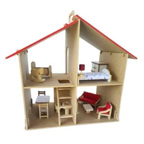 Casinha de Boneca Flex - com Móveis - Madeira - 2 Andares - Bohney