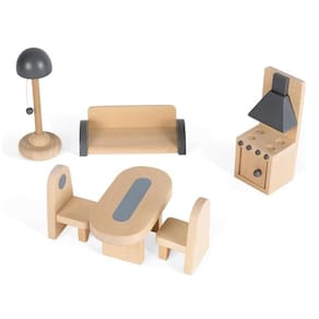 A casa é compatível com figuras de até aproximadamente 11,5 cm de altura. A mobília inclui: 11 acessórios para decorar a sua casa: um roupeiro com portas de abrir, uma cama com colchas, toucador, banheira, sofá, candeeiro, mesa, 2 cadeiras e uma cozinha.
