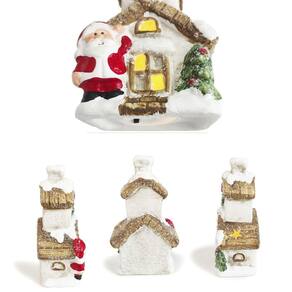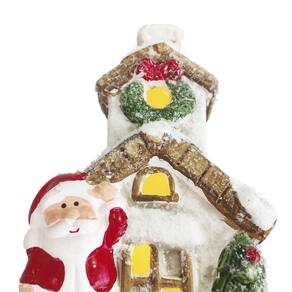Com acabamento refinado e neve artificial, esta casinha retrata o Papai Noel ao lado da árvore de Natal, iluminada por luzes de LED suaves que realçam cada detalhe e criam um clima acolhedor e mágico.