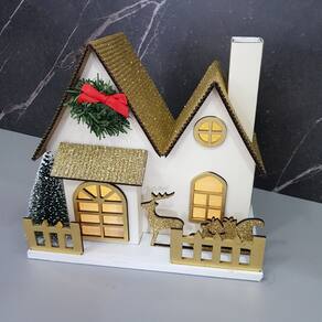 A mini casinha de NATAL com iluminação vai trazer todo chame e encanto na decoração de Natal para sua casa com um brilho muito especial. Ótima opção para sobrepor um móvel, junto a árvore de natal, decoração de salas, quartos, aparadores hall de entrada, recepção, comércio, naquele cantinho especial ou onde seu bom gosto mandar.
