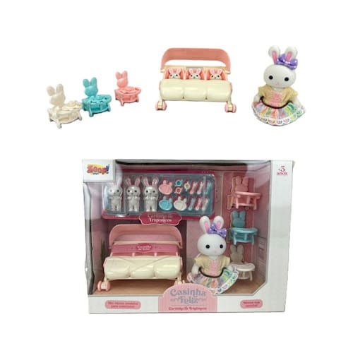 Prepare-se para uma dose tripla de fofura com o encantador Carrinho de Trigêmeos Casinha Feliz. Um cenário completo para brincar de cuidar, alimentar e passear com os adoráveis coelhinhos trigêmeos. Ideal para crianças que amam brincar de faz de conta, cuidar dos bebês e inventar histórias com muitos personagens. O Carrinho de Trigêmeos é mais um lançamento da coleção Casinha Feliz, feito para colecionar, montar cenários incríveis e se divertir todos os dias.