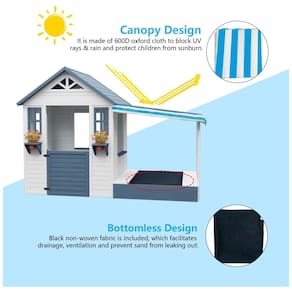 Esta casa de brinquedo é feita de madeira premium e tratada com tinta à base de água, garantindo durabilidade e segurança para as crianças. Com uma caixa de areia funcional e duas caixas de plantio, ela apresenta um design esteticamente agradável que incentiva brincadeiras imaginativas e oferece horas de diversão ao ar livre. Com dimensões de 84,6 cm de comprimento, 38,8 cm de profundidade e 61,5 cm de altura, esta casa é uma adição atraente para pátios, decks, gramados, jardins e quintais. Os cantos são lisos e a superfície é polida, eliminando rebarbas ou pontas afiadas que possam causar acidentes. Este brinquedo é ideal para ajudar seu filho a aprender a interagir, explorar e brincar de faz de conta, promovendo o desenvolvimento de habilidades cognitivas e sociais. Com esta casa de brinquedo, você passará menos tempo na montagem e mais tempo aproveitando momentos de diversão com seus filhos.