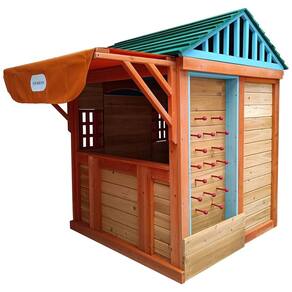 A AOCOROE apresenta a All Wooden Outdoor Playhouse, uma encantadora casa de brincar ao ar livre projetada para crianças de 3 a 8 anos. Fabricada com 100% madeira de abeto de alta qualidade, a casa possui certificações ASTM F963, CPSIA e SOR, garantindo segurança e durabilidade. Com dimensões de 155 cm de comprimento, 116 cm de largura e 162 cm de altura, ela inclui uma porta de tamanho médio, duas janelas que permitem a circulação de ar, uma estação de serviço com toldo, uma parede de bolas e um jogo de Tetris com lançamento de dardos.