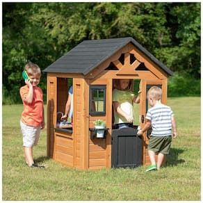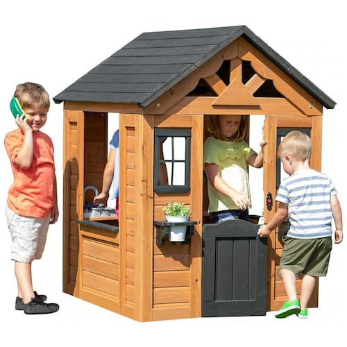 COZY COTTAGE Apresentando uma meia porta da frente campestre, detalhes de estilo country no design da casinha. O Sweetwater inclui vasos de flores de estilo personalizado em cada lado da porta da frente, cozinha com potes, panelas, pia, telefone e uma campainha funcional. LONGA DURAÇÃO, RESISTENTE EM CONDIÇÕES CLIMÁTICAS SEVERAS Por que Cedar Cedar prospera em climas úmidos, permitindo lhe suportar muitas condições. Nossa madeira de cedro durável é resistente à podridão dos elementos. O MELHOR PLAYHOUSE Classificado por This Old House como o melhor playhouse do . Sweetwater incentiva o exercício e a criatividade. Nosso teatro é o melhor presente para dar aos seus filhos pequenos aprendendo a interagir, explorar e fingir brincar. INTERIOR OU EXTERIOR O teatro Sweetwater é robusto e pequeno o suficiente para caber em qualquer tamanho de área externa ou interna. Assim, quando o tempo mudar, você pode manter seu filho entretido e levar a casinha para dentro de casa. RECURSOS DE SEGURANÇA O teatro Sweetwater oferece horas de diversão para o seu filho. O teatro Sweetwater é feito com materiais s e de qualidade. O cedro é pré cortado e construído com segurança, as janelas são feitas sem vidro, as ferramentas internas são de plástico. DIMENSÕES MONTADAS Caixa 1 116x35x38 centimetros. Pequeno e leve o suficiente para desfrutar ao ar livre ou interno. MONTAGEM FÁCIL COM NOSSO APLICATIVO BILT INTERATIVO A casinha Sweetwater é apainelada para uma montagem rápida e simples. Pré cortado, pré perfurado, pré colorido e suportado pelo aplicativo BILT interativo passo a passo