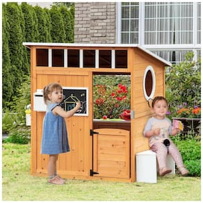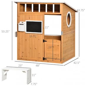 outro BRINQUEDO DE MADEIRA PARA CRIANÇAS Dê aos seus filhos um lugar para brincar ao ar livre com este teatro de quintal. Este teatro ao ar livre inclui uma porta, janelas, caixa de correio, quadro negro, banco, estação de serviço e suporte para vaso de flores. FÁCIL ACESSO A casinha de brincar ao ar livre com telhado inclinado tem três janelas para permitir a circulação de ar e manter os pequenos confortáveis. A porta de meio tamanho permite que seus filhos entrem e saiam de casa rapidamente. PRESENTE DIVERTIDO PARA SEU FILHO Seu filho pode brincar de faz de conta com esta casinha projetada para parecer um lar natural. Ajude seu filho a expressar sua criatividade, desenvolver suas habilidades sociais e melhorar sua coordenação olho mão. ESTRUTURA SÓLIDA O teatro infantil ao ar livre é feito com madeira maciça de abeto, formando uma estrutura forte para uso diário. Adequado para uso ao ar livre. INFORMAÇÕES DE PLAYHOUSE KIDS Dimensões totais 121x106x134 centimetros A com teto. Dimensões da porta 38 a 48 centimetros. Adequado para crianças de 3 a 8 anos de idade. Certificação ASTM F963, CPSIA Marca: Não Informado
