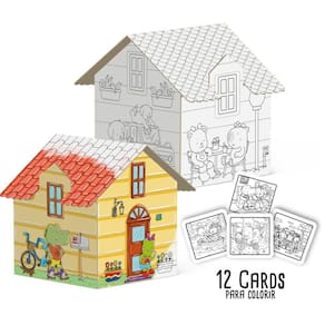 Contém: 1 casinha para colorir dentro e fora, 12 gizes de cera e 12 cards para colorir.