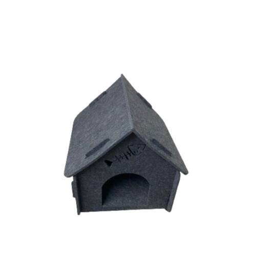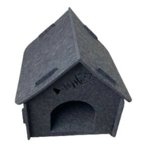 Caracteristicas: - Material: Feltro - Cor: Cinza escuro e Bege - Medida Total: 40cm (profundidade) x 39cm (largura) x 42cm(altura) - Medida Interna: 33cm (profundidade) x 35cm (largura) x 36cm (altura) - Medida da entrada : 18x18cm - A casinha possui uma janela e uma porta sem fechamento - Validade: Prazo Indeterminado (produto não perecível).