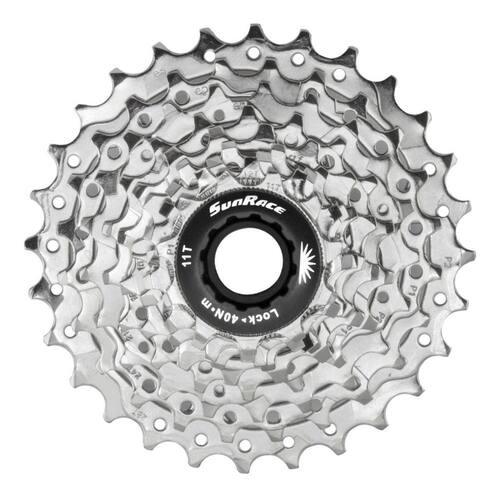 Principais características: - Marca: SunRace - Modelo: M96 9v - Compatível com relações Shimano ou SRAM - Cassete para relações de 9 Velocidades - Relação de marchas: 11-28 11-12-13-14-16-18-21-24-28 - Cor: Prata Cromado - Peso: 267g