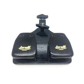 Para o multi-percussionista, que precisa tocar vários instrumentos ao mesmo tempo, esta castanhola dupla é uma opção prática para usar alternando ou simultaneamente com outros instrumentos.