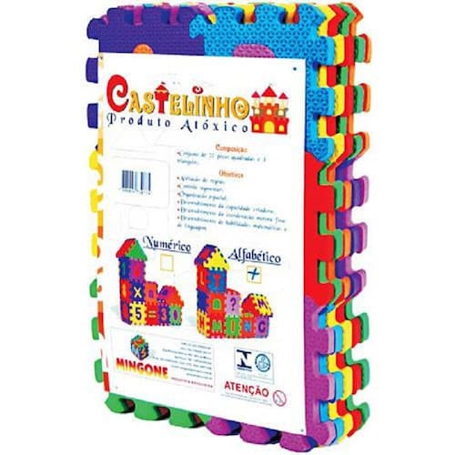 Castelinho De Eva Alfabetico De Encaixe 34 Pecas - Mingone O castelinho alfabetico e composto por 34 pecas de eva de encaixe. O tamanho de cada peca e de 09 cm por 09 cm o eva e uma material antialergico, atoxico e lavavel. O produto possui selo de qualidade inmetro. CE-BRI 0012/2019-01 - NM 300/2004 - OCP 0147