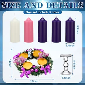 - O pacote inclui: você receberá 1 peça de suporte de vela com coroa de advento de Natal, 1 peça de castiçal de vidro e 5 peças de velas do advento; todos os domingos do Advento, você pode acender velas acompanhadas de leitura da Bíblia e orar com sua família