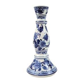 Ilumine seu ambiente com elegância e tradição usando nosso castiçal em porcelana azul e branca com estampa floral. Uma peça que combina arte e funcionalidade, perfeita para dar um toque especial à sua decoração.