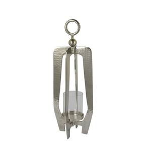 Lanterna de castiçal Benjara Brie, 23 polegadas, estrutura de metal prateado, abajur de vidro — um castiçal decorativo. Feito de metal de alta qualidade para uma beleza duradoura.