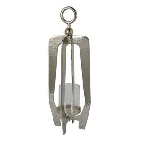 Lanterna de castiçal Benjara Brie, 27 polegadas, estrutura de metal prateado, abajur de vidro — um castiçal decorativo. Feito de metal de alta qualidade para uma beleza duradoura.